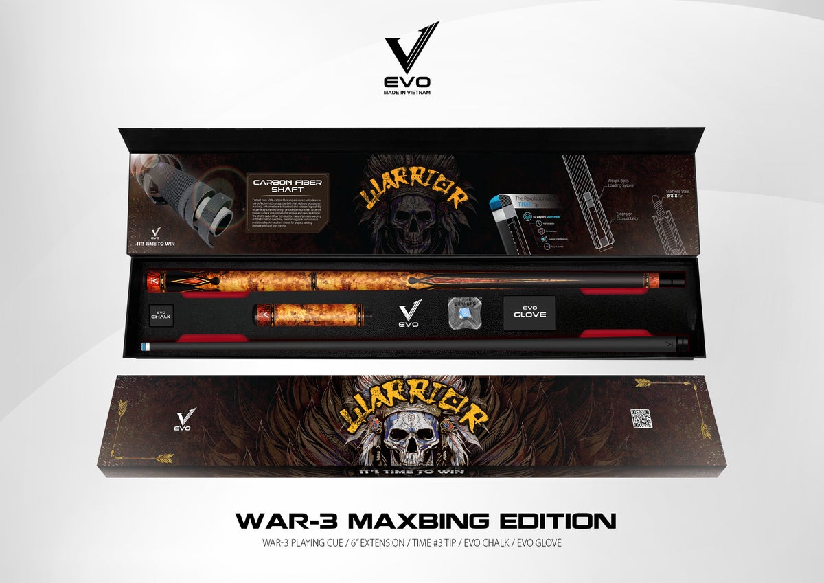 EVO Warrior MaxBing Edition on huippuluokan hiilikuitukeppi, joka yhdistää tarkkuuden, hallinnan ja modernin tyylin. 12,5 mm hiilikuitushafti ja TIME 3 -tippi tarjoavat tasaisen ja luotettavan lyöntituntuman. Tyylikäs Royal White -grippi viimeistelee keppiin näyttävän ilmeen ja mukavan otteen.